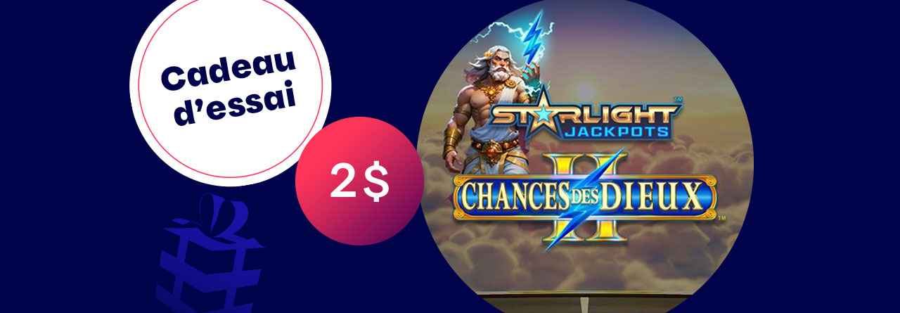 Vous avez aimé le jeu Chances des Dieux? Vous allez adorer Starlight Jackpots Chances des Dieux 2TM. Voici XX $ pour l’essayer*.