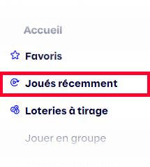 Les favoris de la section Loteries sont gérés séparément. Ils peuvent être consultés dans la section Mon compte (Mon Espacejeux).