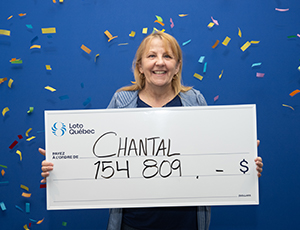 Chantal était seule lorsqu’elle a découvert qu’elle avait remporté le lot progressif du jeu Lucky Lily Keno. « Je sautais partout! », raconte-t-elle. Elle a aussitôt appelé son amie pour lui annoncer qu’elle venait de gagner 154 809 $!